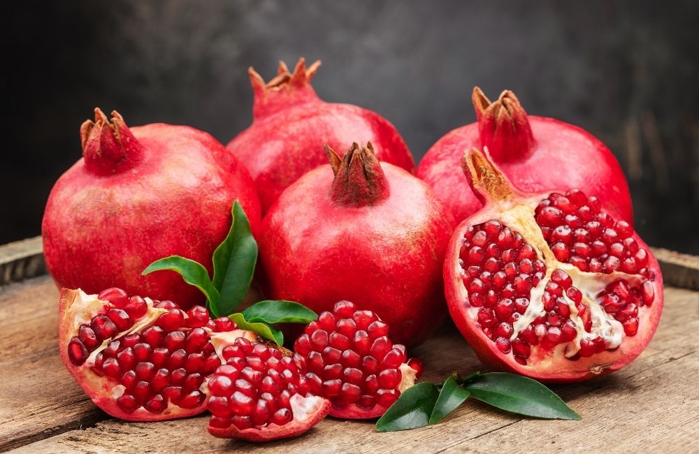 The pomegranate is a bright red fruit that looks simple on the outside, but contains hundreds of tiny, edible seeds. Pomegranates are hailed as a superfood because of the many health benefits they hold.