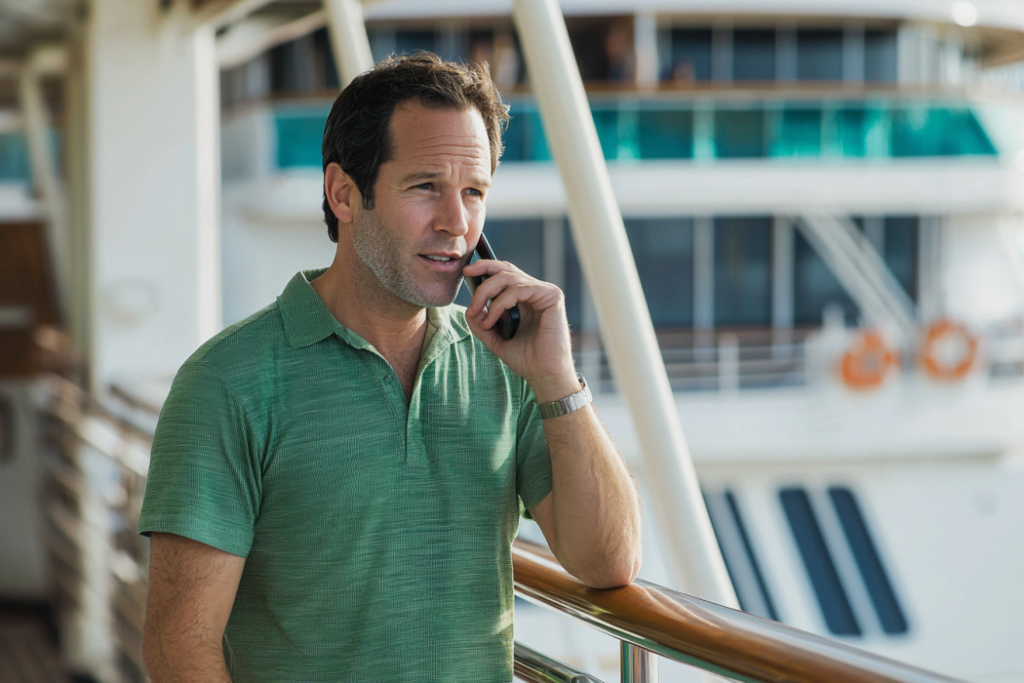 He leaned on the railing, gazing out at the vast expanse of ocean, allowing his mind to drift as the horizon stretched endlessly before him. It was a picture-perfect moment—one that seemed almost too serene to be real.